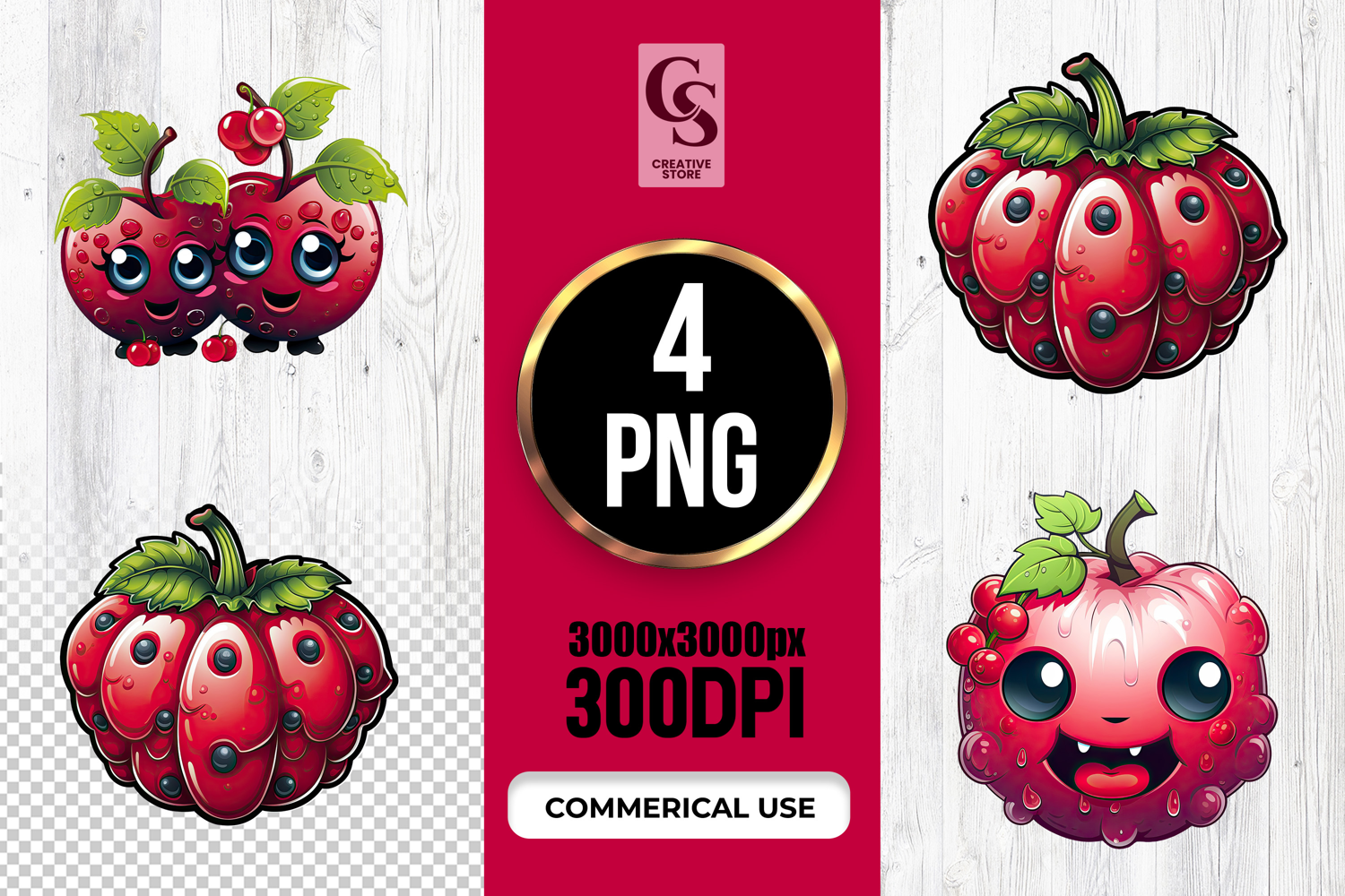 4 Cute Cherry and Red Berry Clipart Sublimation PNG Files Perfect for Greeting Cards, Invitations, Junk Journal, Party Decor, Scrapbooking and many other craft projects.