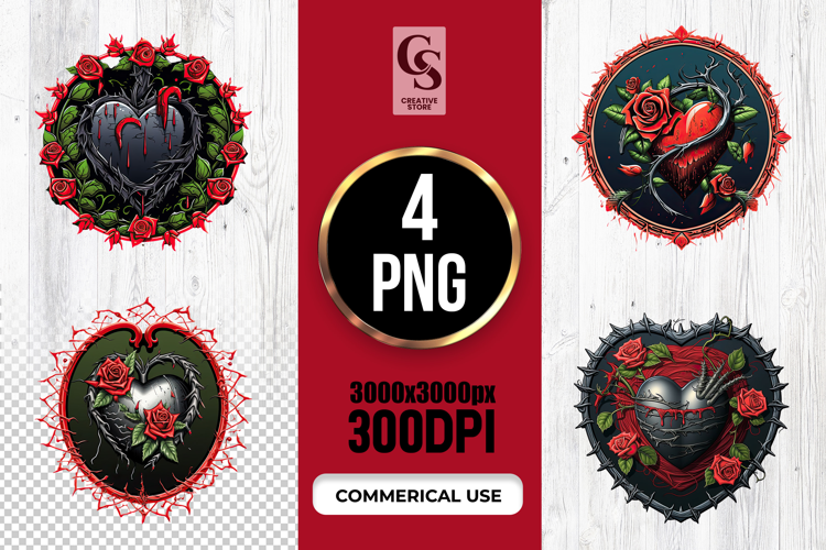 4 Gothic Rose Heart Mandala Art Clipart Sublimation PNG Files Perfect for Greeting Cards, Invitations, Junk Journal, Party Decor, Scrapbooking and many other craft projects.