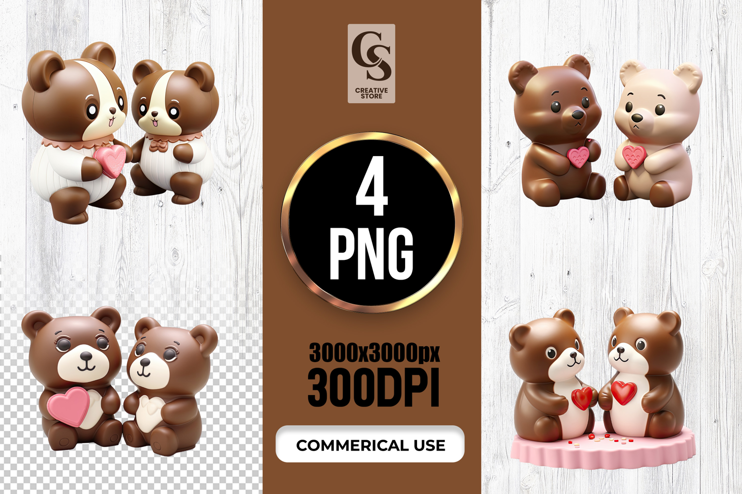 4 Cute Bear Couple Holding Hearts Clipart Sublimation PNG  Files Perfect for Greeting Cards, Invitations, Junk Journal, Party Decor, Scrapbooking and many other craft projects.
