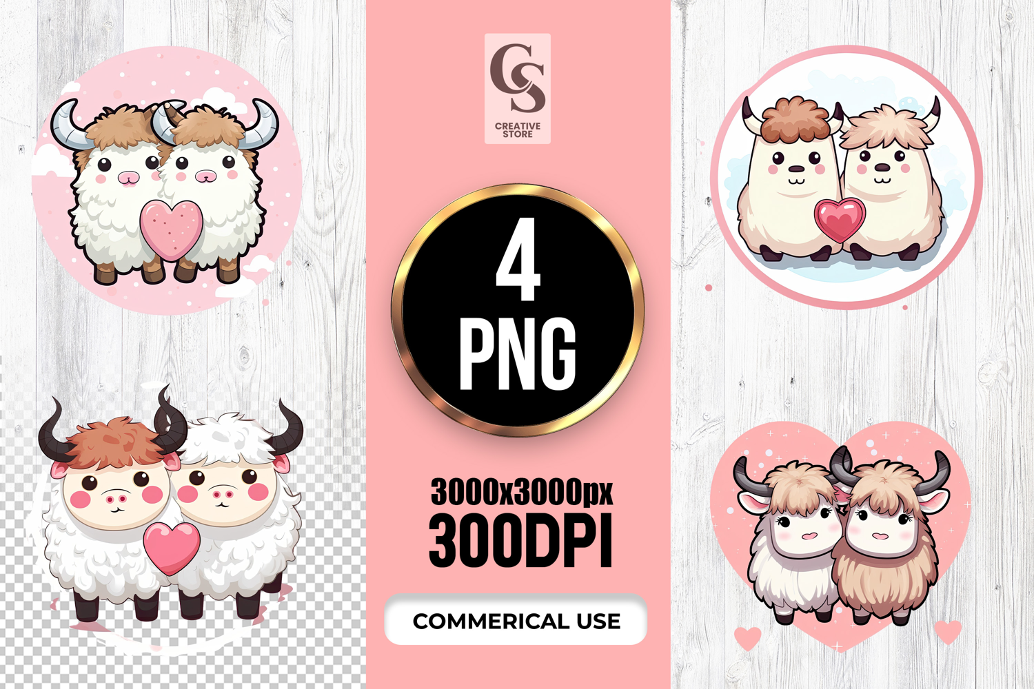 4 Cute Highland Cow Couple Illustration Clipart PNG  Files Perfect for Greeting Cards, Invitations, Junk Journal, Party Decor, Scrapbooking and many other craft projects.