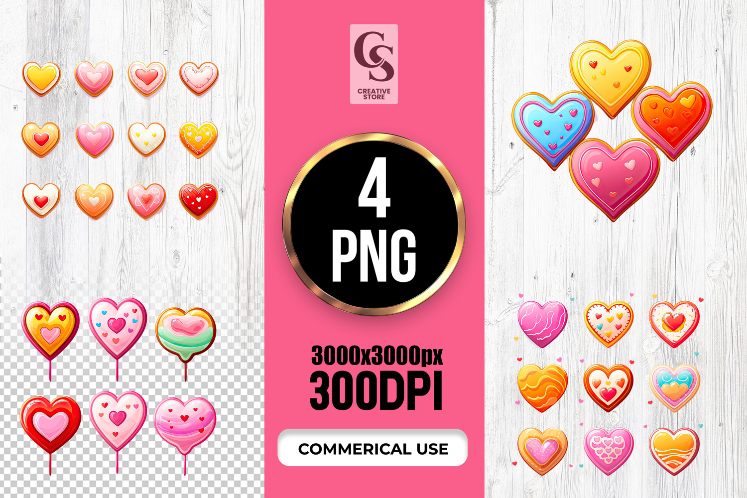 Cute Candy Heart Set Illustration Clipart Sublimation PNG example image 1