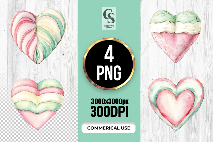 4 Watercolor Pastel Heart Clipart Sublimation PNG Files Perfect for Greeting Cards, Invitations, Junk Journal, Party Decor, Scrapbooking and many other craft projects.