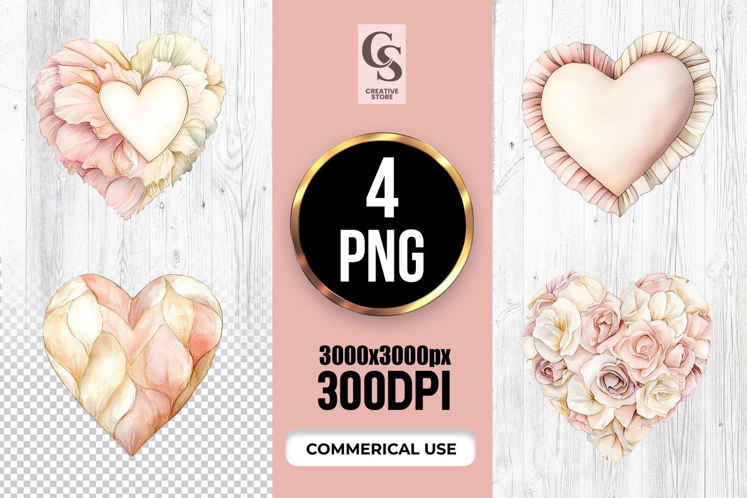 4 Soft Pastel Watercolor Heart Clipart Sublimation PNG Files Perfect for Greeting Cards, Invitations, Junk Journal, Party Decor, Scrapbooking and many other craft projects.