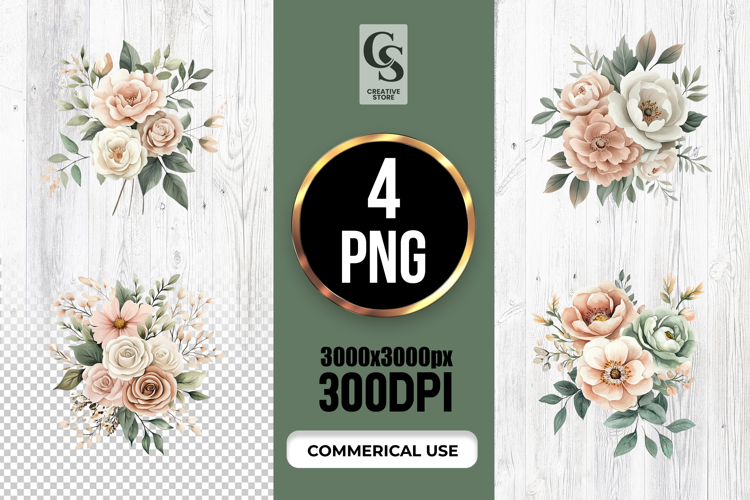 4 Watercolor Neutral Floral Clipart Sublimation PNG G Files Perfect for Greeting Cards, Invitations, Junk Journal, Party Decor, Scrapbooking and many other craft projects.