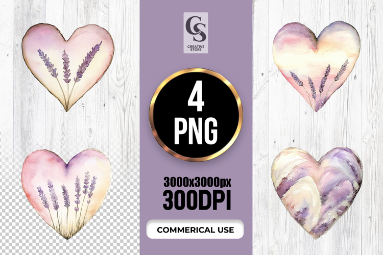 4 Watercolor Lavender Heart Clipart Sublimation PNG c Files Perfect for Greeting Cards, Invitations, Junk Journal, Party Decor, Scrapbooking and many other craft projects.