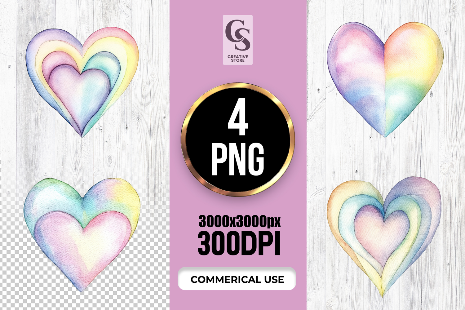 4 Pastel Layered Watercolor Heart Clipart Sublimation PNG Files Perfect for Greeting Cards, Invitations, Junk Journal, Party Decor, Scrapbooking and many other craft projects.