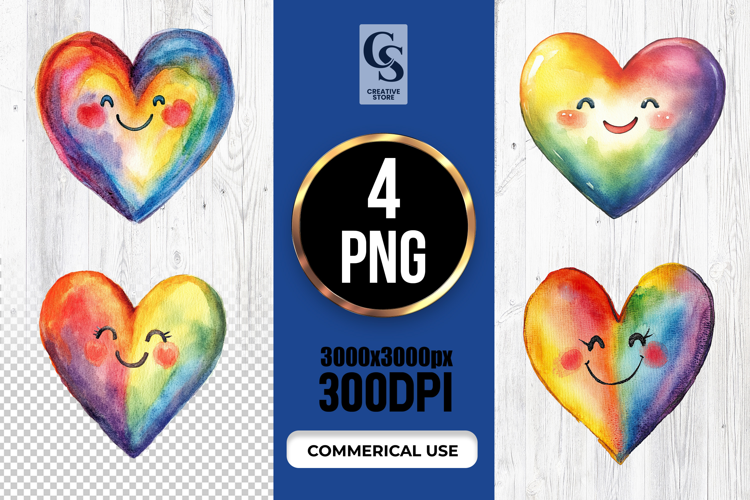 4 Cute Smiling Rainbow Heart Clipart Sublimation PNG Files Perfect for Greeting Cards, Invitations, Junk Journal, Party Decor, Scrapbooking and many other craft projects.