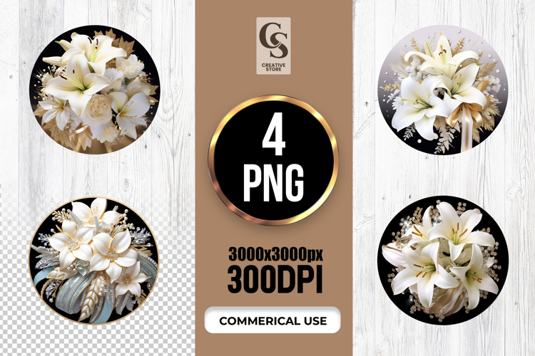 4 Elegant White Lily Floral Clipart Sublimation PNG  Files Perfect for Greeting Cards, Invitations, Junk Journal, Party Decor, Scrapbooking and many other craft projects.