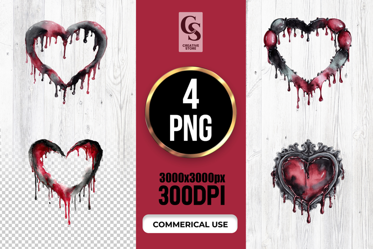 4 Dripping Gothic Heart Watercolor Clipart Sublimation PNG  Files Perfect for Greeting Cards, Invitations, Junk Journal, Party Decor, Scrapbooking and many other craft projects.