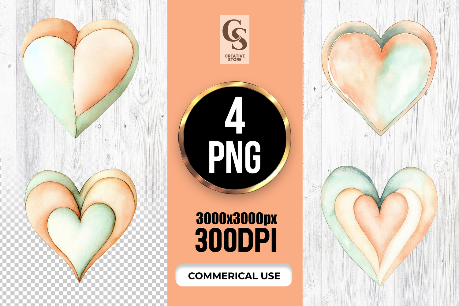 4 Watercolor Pastel Heart Illustration Clipart Sublimation PNG  Files Perfect for Greeting Cards, Invitations, Junk Journal, Party Decor, Scrapbooking and many other craft projects.