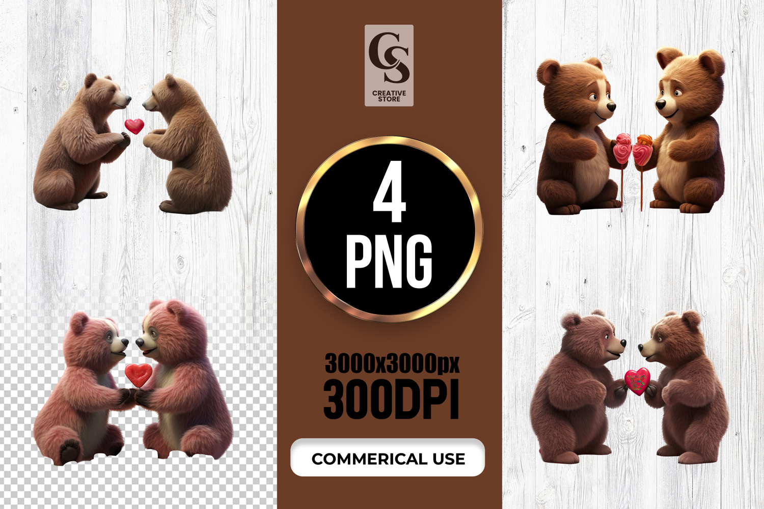 4 Cute Bear Couple Heart Illustration Clipart Sublimation PNG    Files Perfect for Greeting Cards, Invitations, Junk Journal, Party Decor, Scrapbooking and many other craft projects.