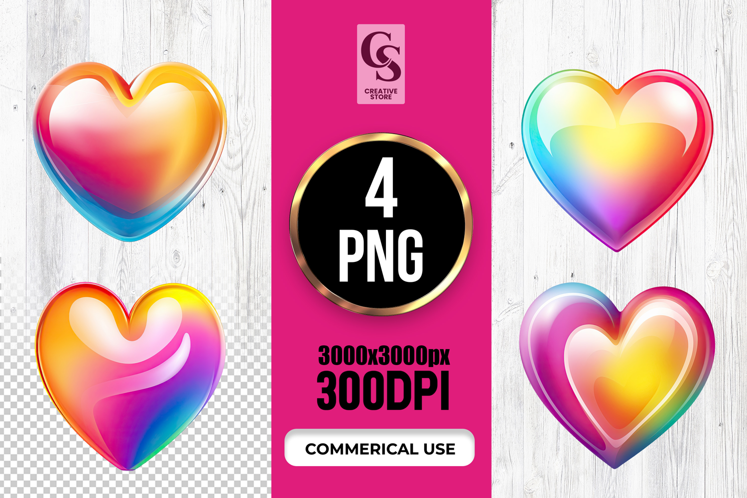 4 Glossy Gradient Rainbow Heart Clipart Sublimation PNG    Files Perfect for Greeting Cards, Invitations, Junk Journal, Party Decor, Scrapbooking and many other craft projects.