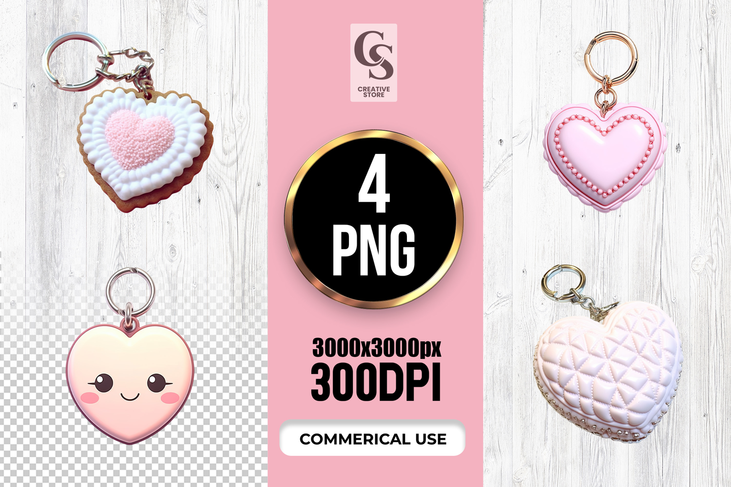 4 Cute Heart Keychain Clipart Sublimation PNG   Files Perfect for Greeting Cards, Invitations, Junk Journal, Party Decor, Scrapbooking and many other craft projects.