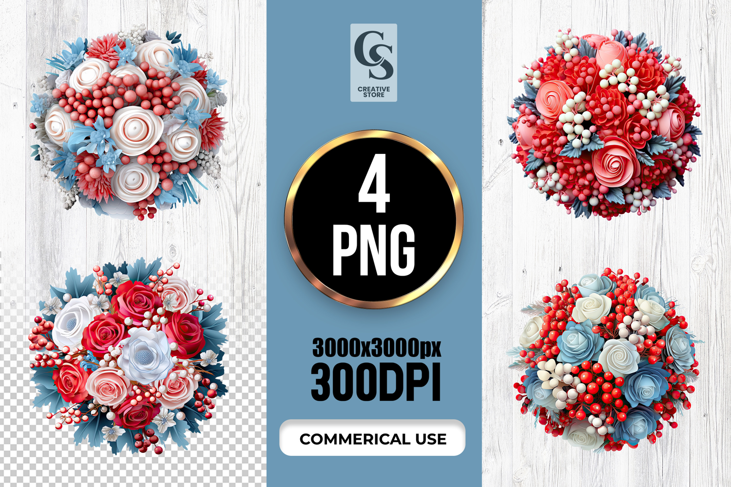 4 Colorful Rose Floral Bouquet Clipart Sublimation PNG  Files Perfect for Greeting Cards, Invitations, Junk Journal, Party Decor, Scrapbooking and many other craft projects.
