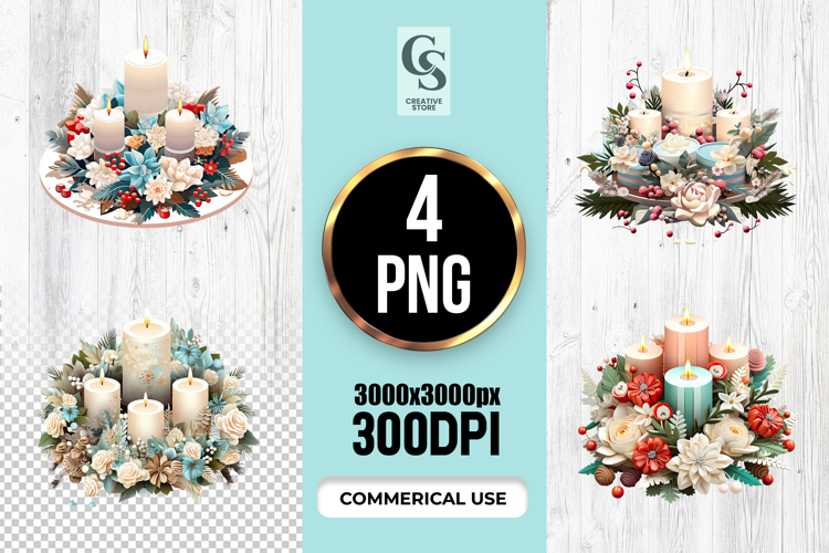 4 Floral Candle Centerpiece Clipart Sublimation PNG  Files Perfect for Greeting Cards, Invitations, Junk Journal, Party Decor, Scrapbooking and many other craft projects.