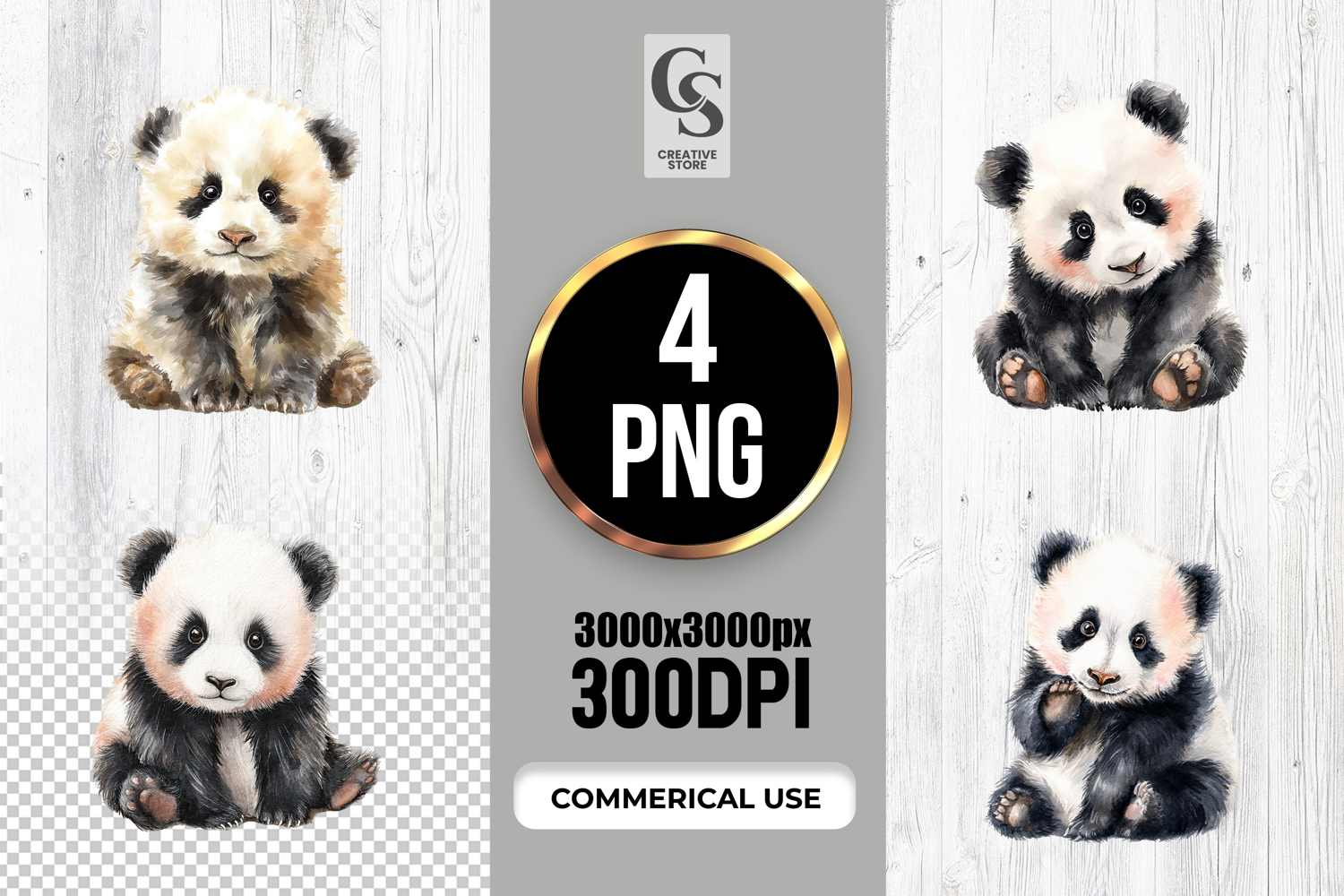 4 Cute Watercolor Baby Panda Clipart Sublimation PNG Files Perfect for Greeting Cards, Invitations, Junk Journal, Party Decor, Scrapbooking and many other craft projects.