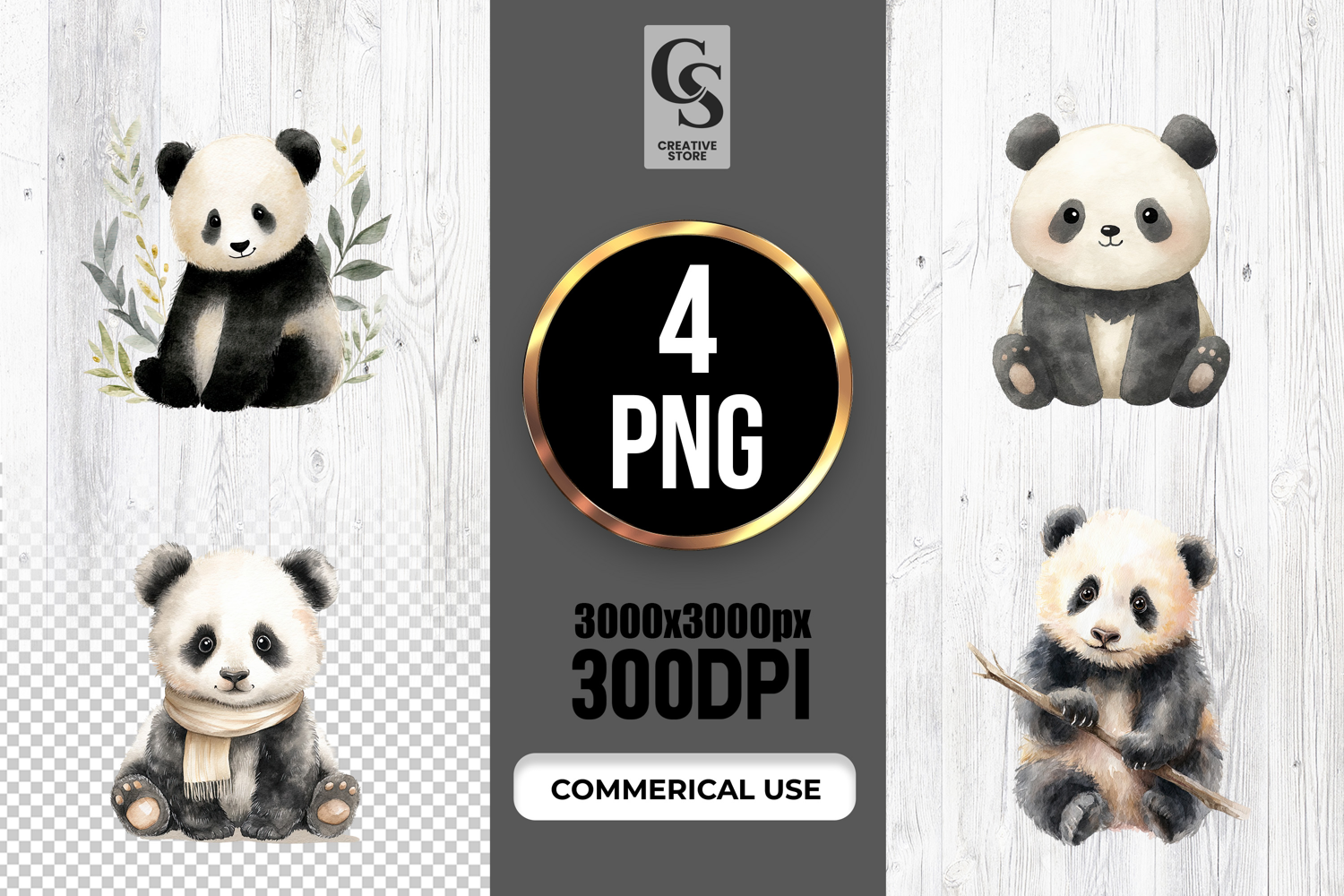 4 Cute Panda Bear Watercolor Clipart Sublimation PNG Files Perfect for Greeting Cards, Invitations, Junk Journal, Party Decor, Scrapbooking and many other craft projects.
