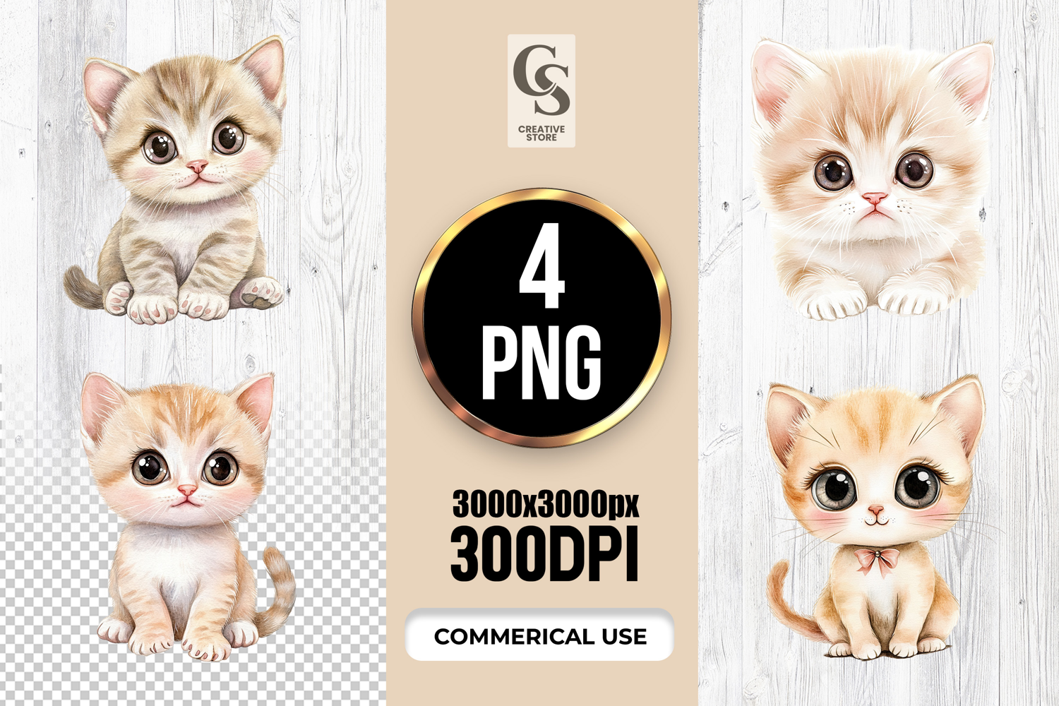 4 Cute Big Eyes Kitten Clipart Sublimation PNG Files Perfect for Greeting Cards, Invitations, Junk Journal, Party Decor, Scrapbooking and many other craft projects.