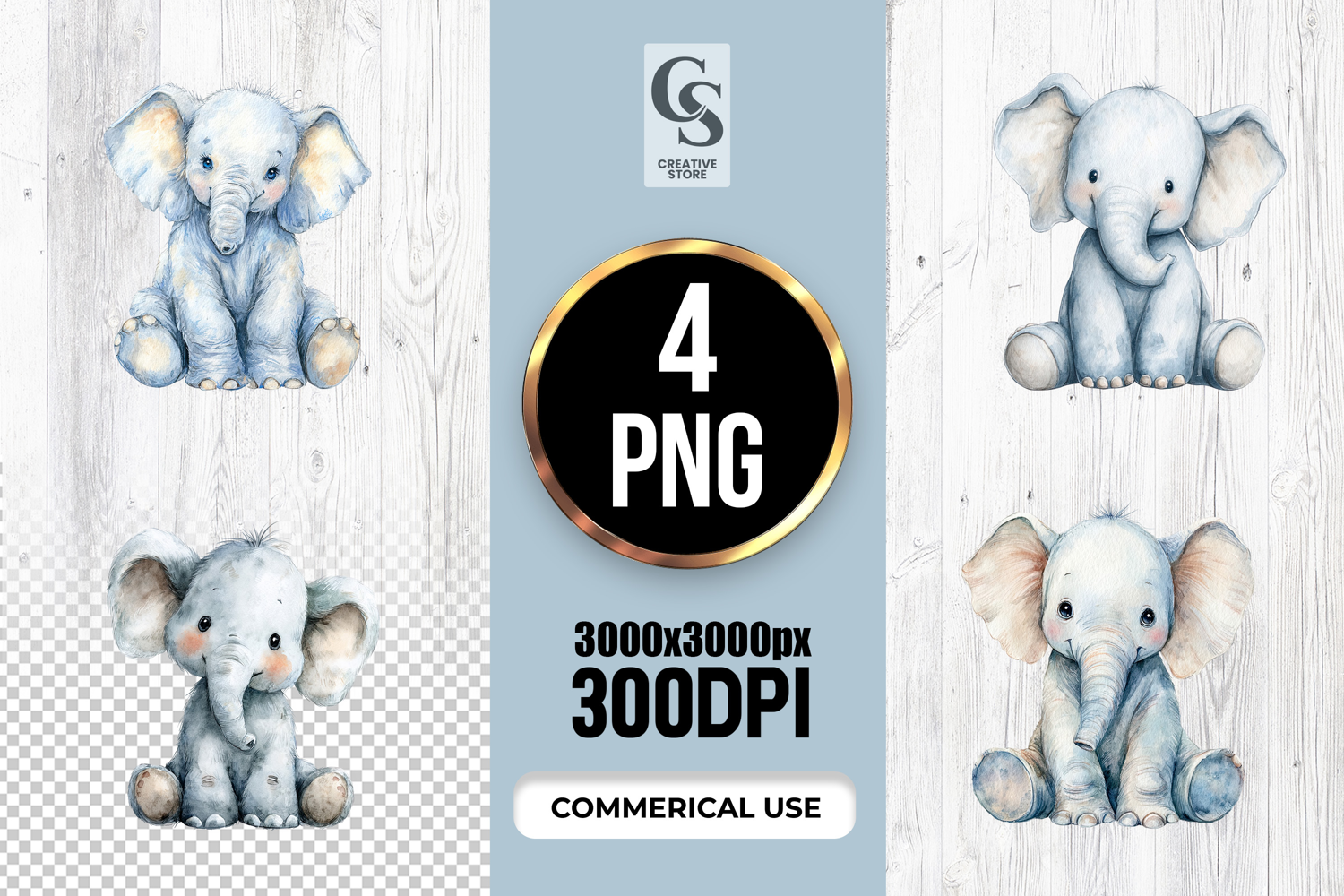 4 Cute Watercolor Baby Elephant Clipart Sublimation PNG Clipart Files Perfect for Greeting Cards, Invitations, Junk Journal, Party Decor, Scrapbooking and many other craft projects.