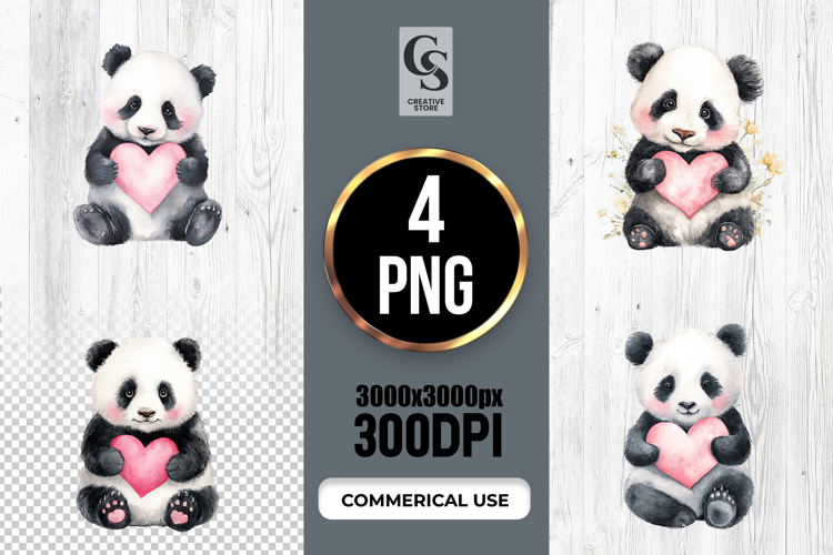 4 Cute Watercolor Baby Panda With Heart Clipart PNG Clipart Files Perfect for Greeting Cards, Invitations, Junk Journal, Party Decor, Scrapbooking and many other craft projects.