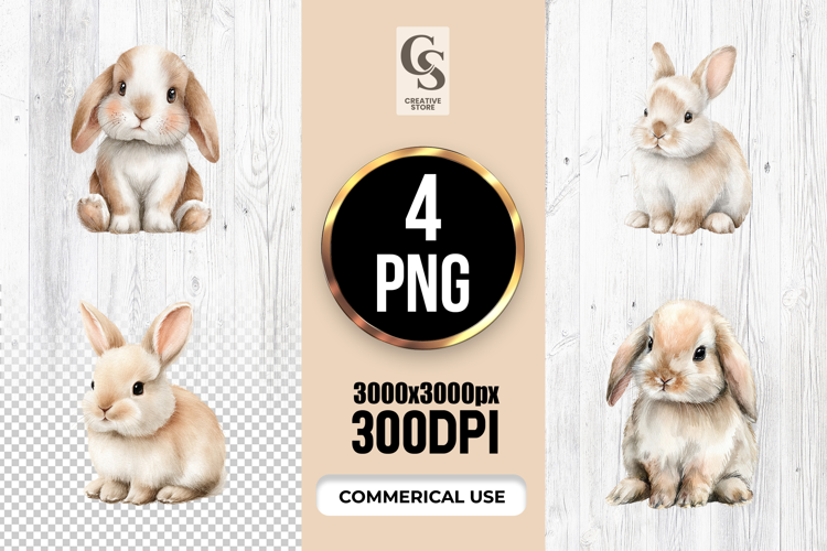 4 Cute Baby Bunny Watercolor Clipart Sublimation PNG Files Perfect for Greeting Cards, Invitations, Junk Journal, Party Decor, Scrapbooking and many other craft projects.