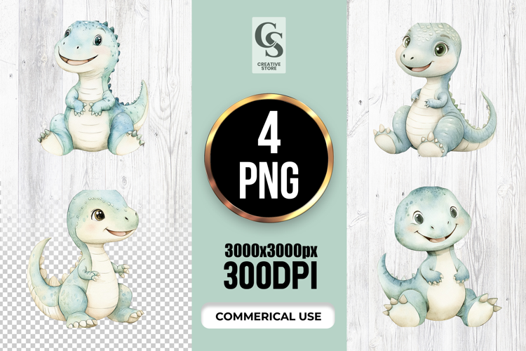 4 Smiling Baby Dinosaur Watercolor Clipart Sublimation PNG Files Perfect for Greeting Cards, Invitations, Junk Journal, Party Decor, Scrapbooking and many other craft projects.