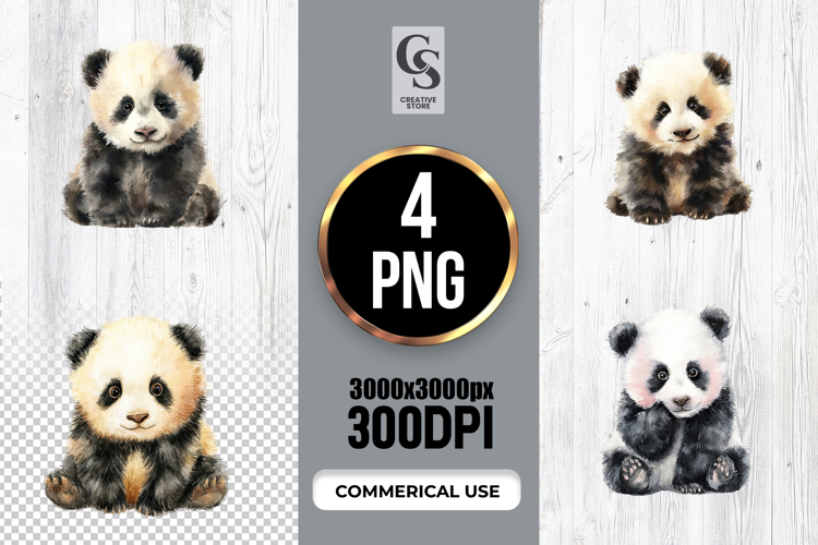 4 Cute Watercolor Baby Panda Clipart Sublimation PNG Files Perfect for Greeting Cards, Invitations, Junk Journal, Party Decor, Scrapbooking and many other craft projects.