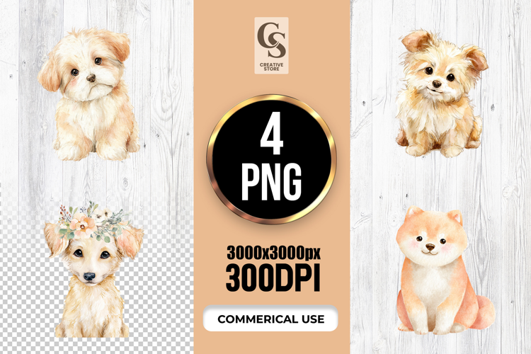 4 Cute Watercolor Puppy & Fox Woodland Clipart Sublimation PNG Files Perfect for Greeting Cards, Invitations, Junk Journal, Party Decor, Scrapbooking and many other craft projects.