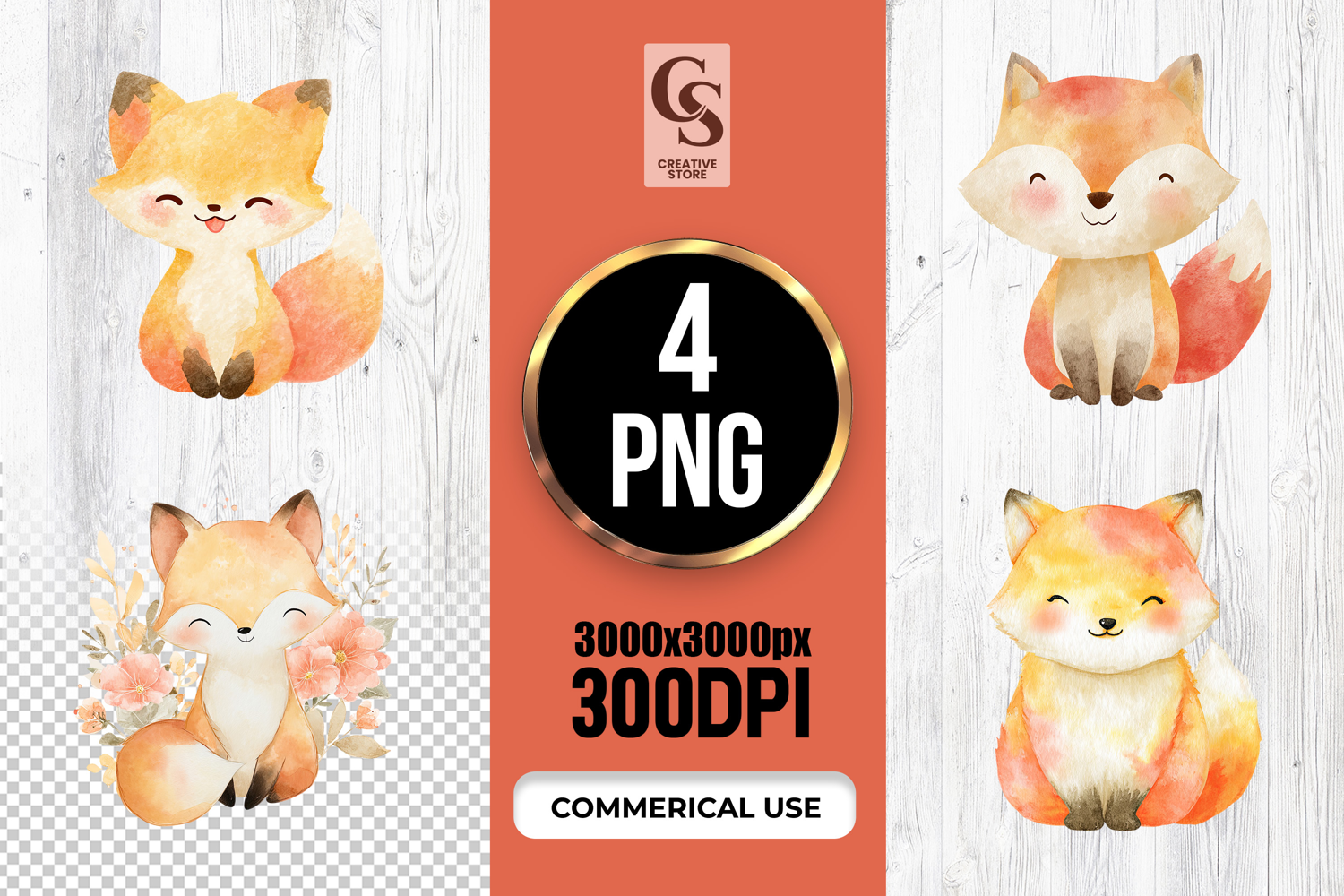 4 Cute Watercolor Fox Woodland Clipart Sublimation PNG Files Perfect for Greeting Cards, Invitations, Junk Journal, Party Decor, Scrapbooking and many other craft projects.