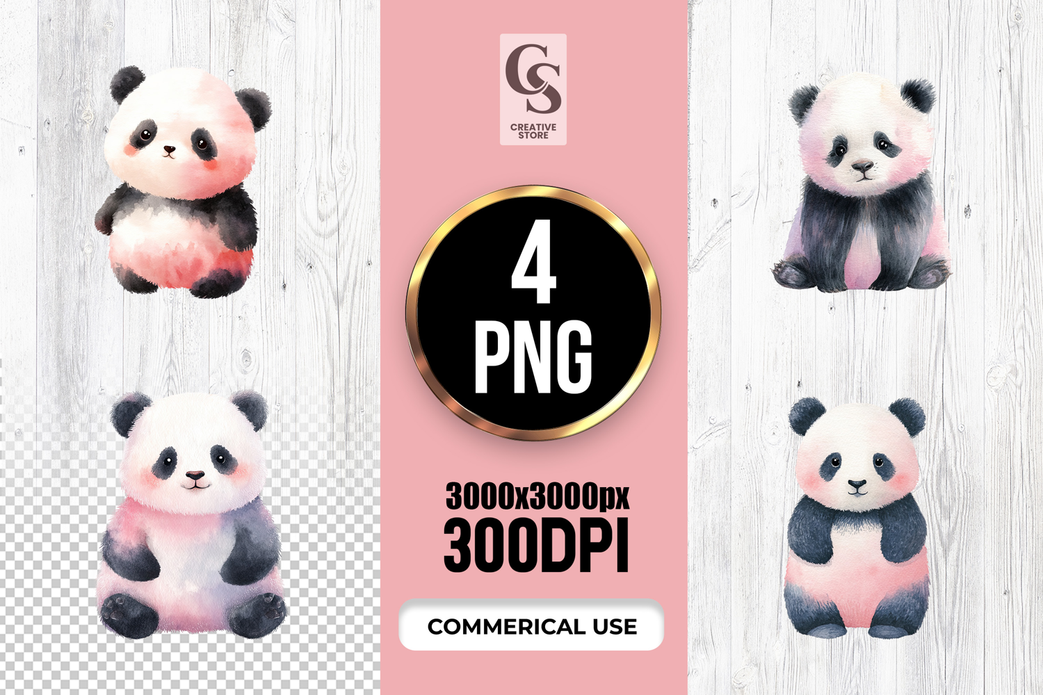 4 Cute Watercolor Panda Clipart Sublimation PNG Files Perfect for Greeting Cards, Invitations, Junk Journal, Party Decor, Scrapbooking and many other craft projects.