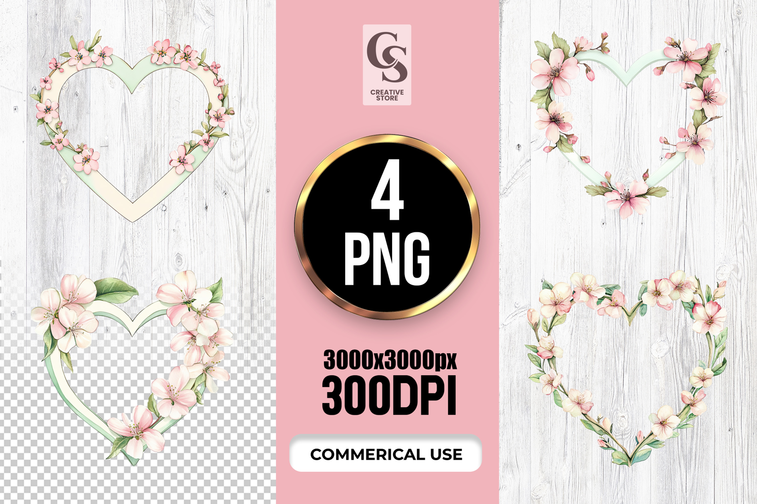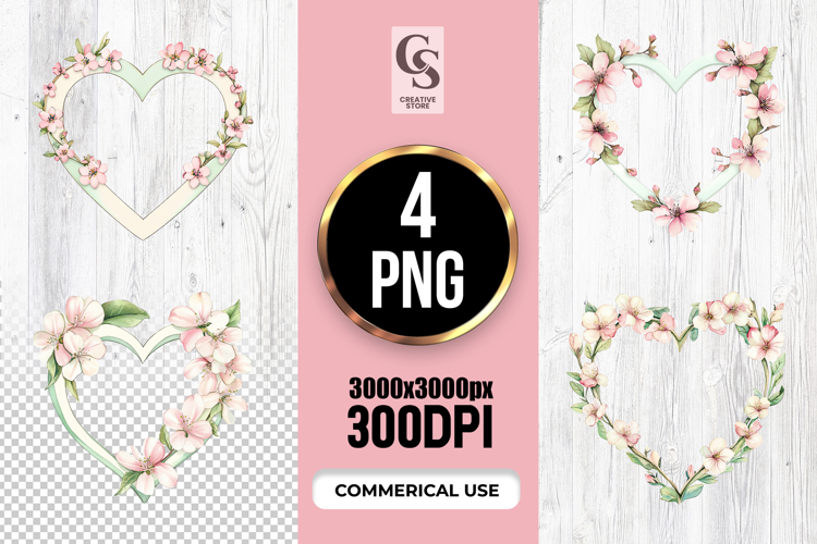 4 Cherry Blossom Floral Heart Frame Clipart Sublimation PNG Files Perfect for Greeting Cards, Invitations, Junk Journal, Party Decor, Scrapbooking and many other craft projects.