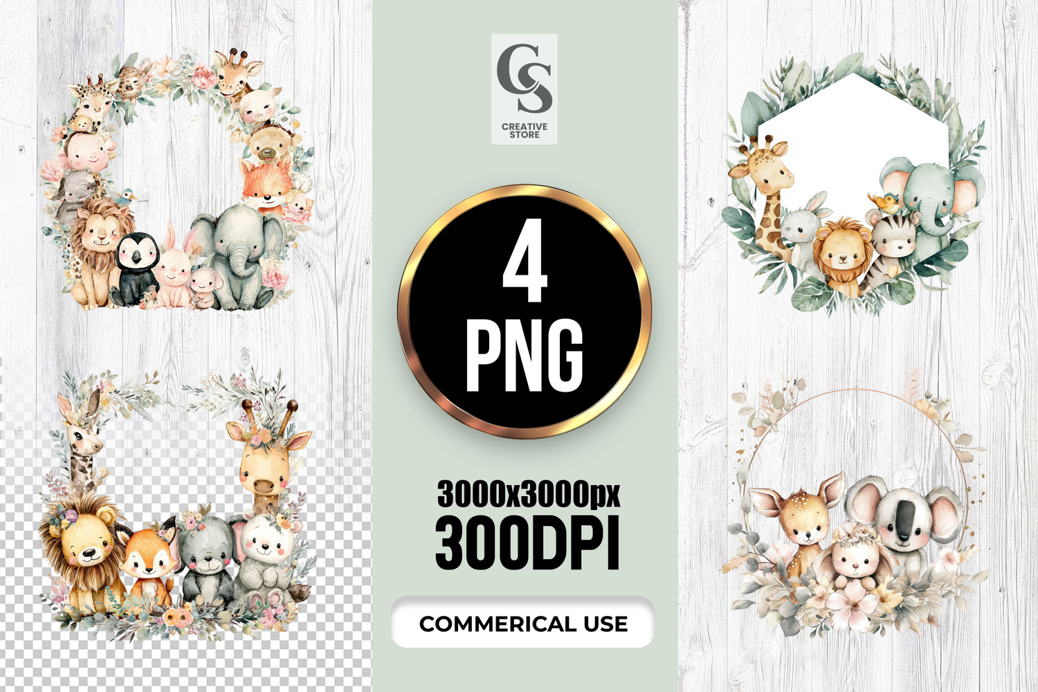 4 Cute Jungle Animal Wreath Clipart Sublimation PNG Clipart Files Perfect for Greeting Cards, Invitations, Junk Journal, Party Decor, Scrapbooking and many other craft projects.