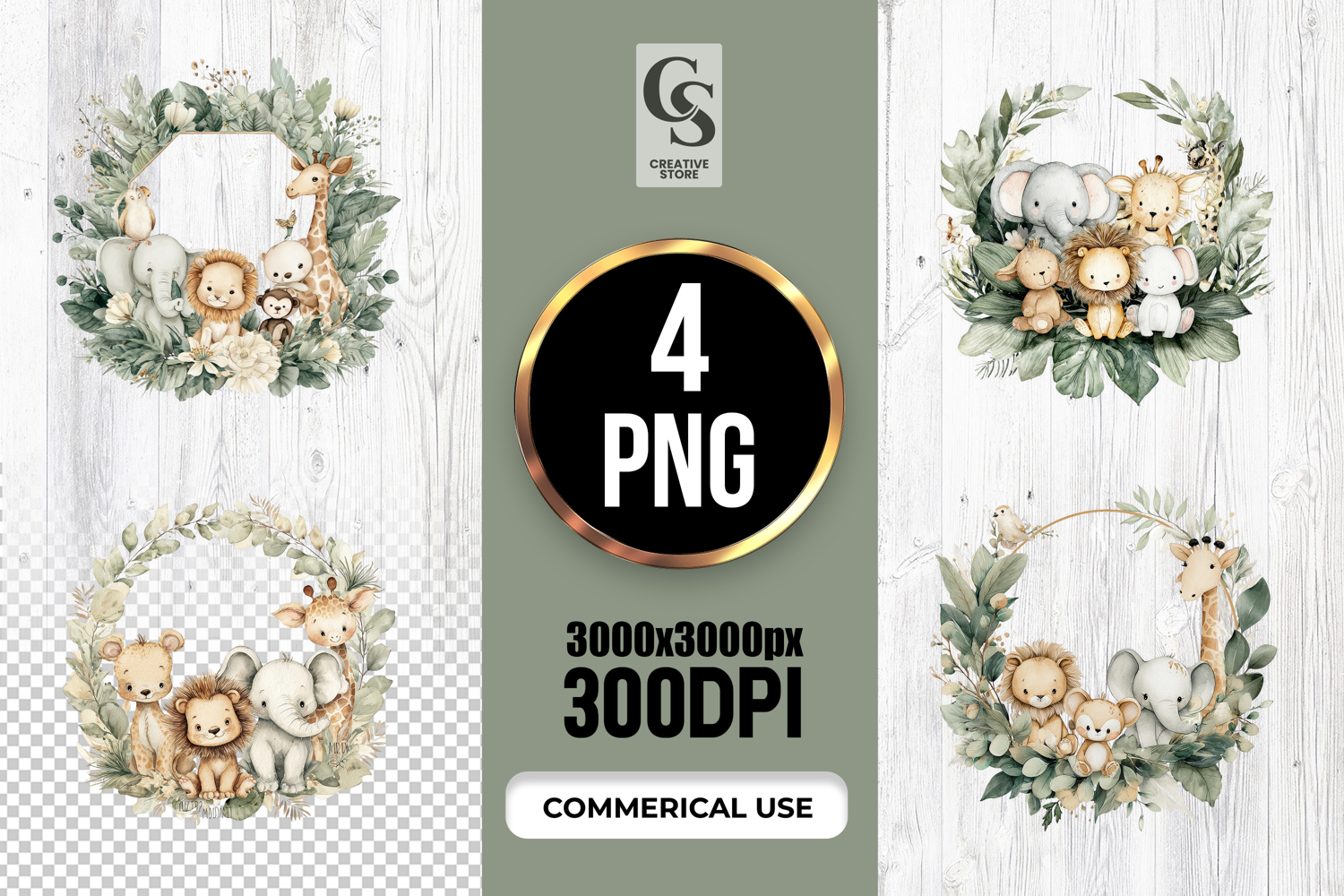 4 Watercolor Jungle Animal Wreath Clipart Sublimation PNG Clipart Files Perfect for Greeting Cards, Invitations, Junk Journal, Party Decor, Scrapbooking and many other craft projects.