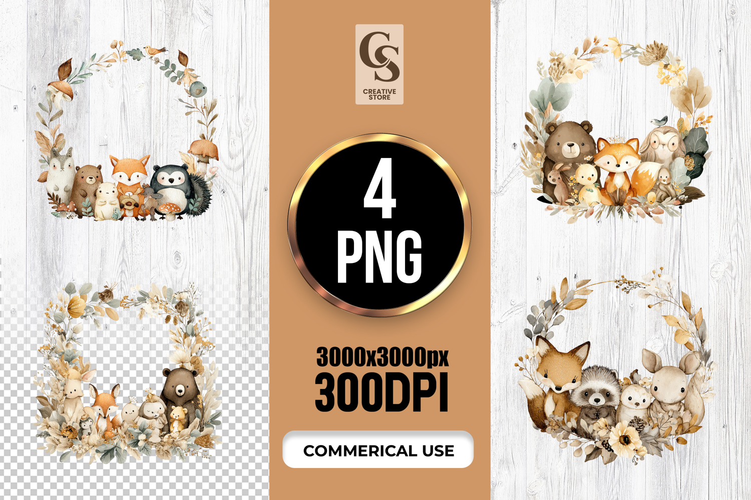 4 Cute Watercolor Forest Animal Wreath Clipart Sublimation PNG Clipart Files Perfect for Greeting Cards, Invitations, Junk Journal, Party Decor, Scrapbooking and many other craft projects.