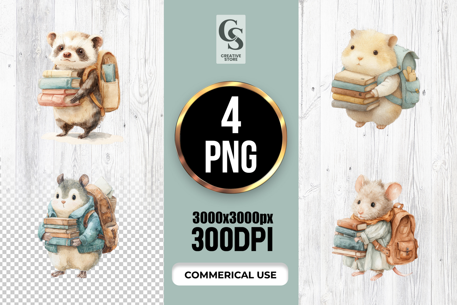 4 Cute Watercolor Animal Reading Clipart Sublimation PNG Files Perfect for Greeting Cards, Invitations, Junk Journal, Party Decor, Scrapbooking and many other craft projects.