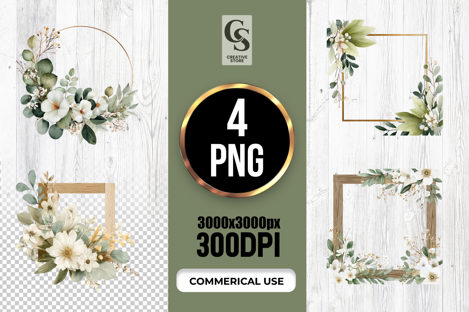 4 Green Eucalyptus Floral Frame Clipart PNG Files Perfect for Greeting Cards, Invitations, Junk Journal, Party Decor, Scrapbooking and many other craft projects.
