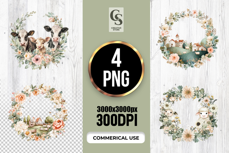 Similar Design Products to Farm Animal Floral Wreath Clipart PNG