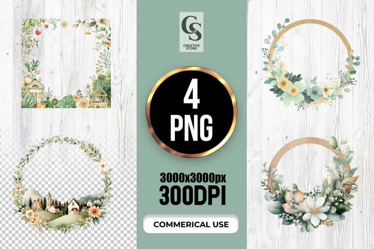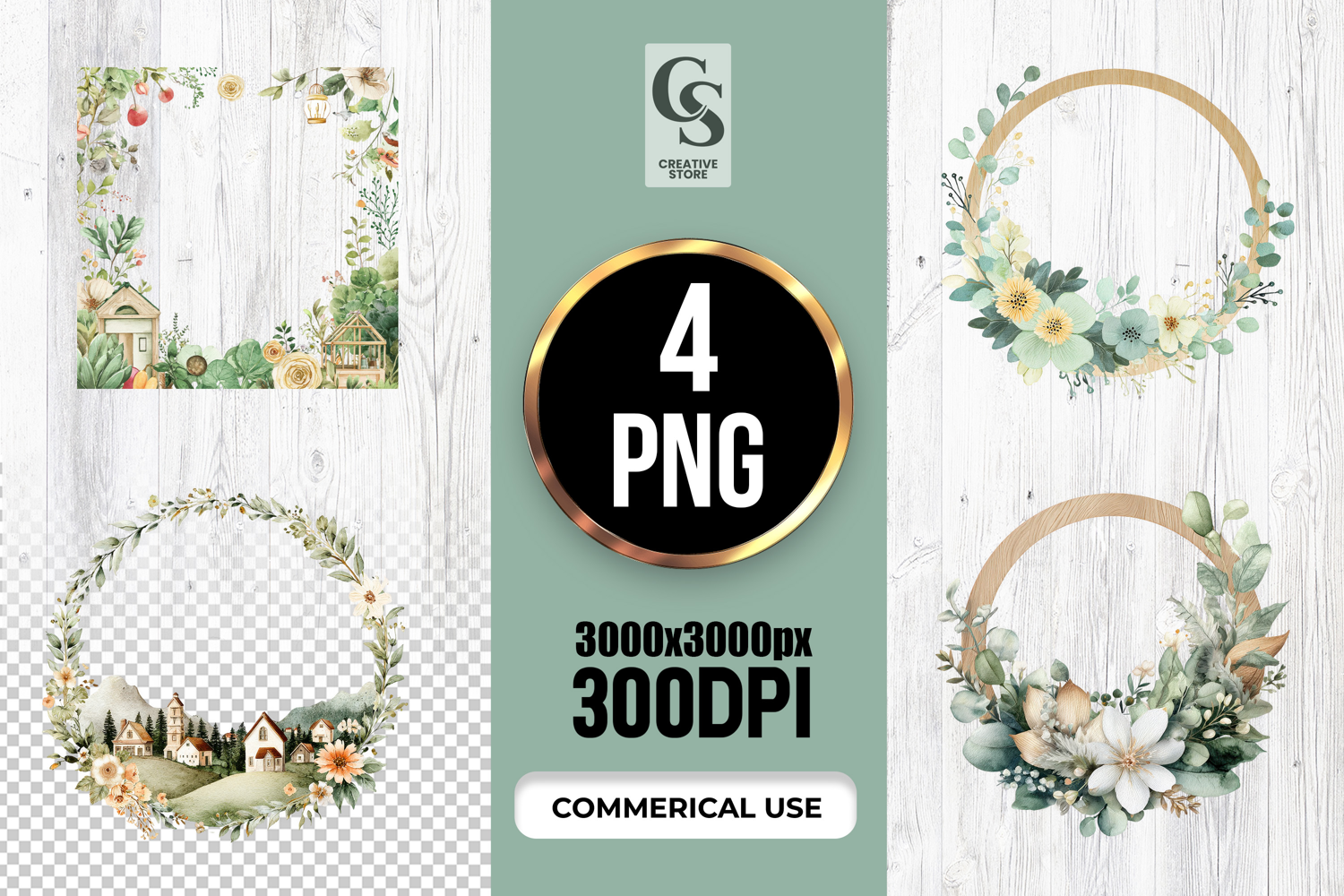 Cottage Garden Floral Frames Clipart Sublimation PNG example image 1