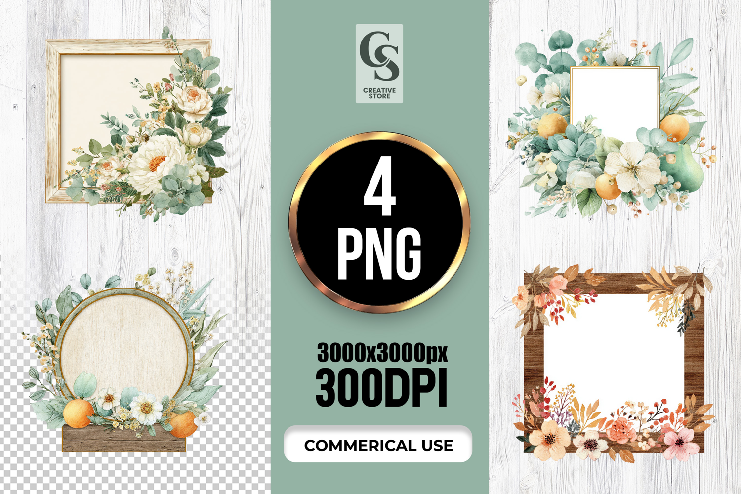 Rustic Floral Frames with Greenery Clipart Sublimation PNG example image 1