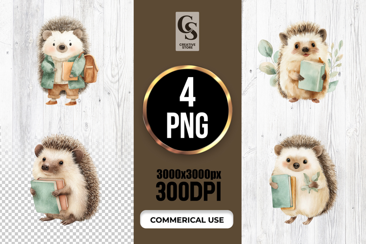 4 Cute Hedgehog with Books Clipart Sublimation PNG Files Perfect for Greeting Cards, Invitations, Junk Journal, Party Decor, Scrapbooking and many other craft projects.