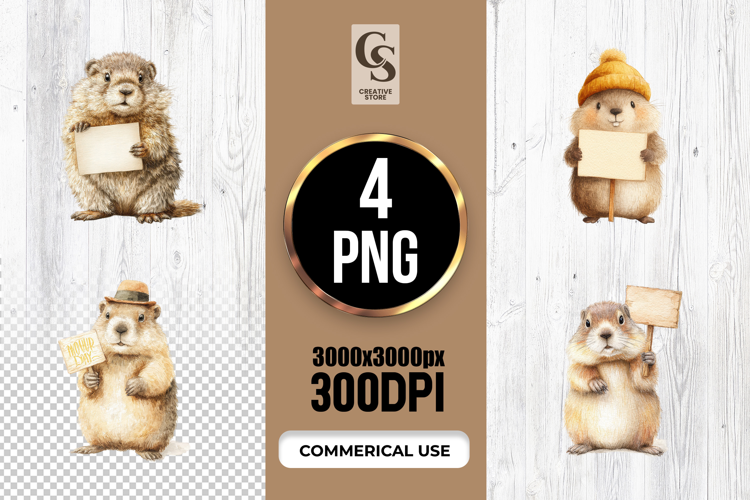 4 Cute Watercolor Marmot Holding Sign Clipart Sublimation PNG   Files Perfect for Greeting Cards, Invitations, Junk Journal, Party Decor, Scrapbooking and many other craft projects.