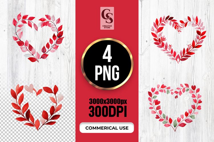 4 Watercolor Leaf Heart Frames Clipart Sublimation PNG   Files Perfect for Greeting Cards, Invitations, Junk Journal, Party Decor, Scrapbooking and many other craft projects.