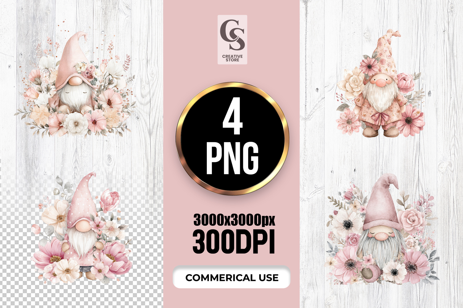 4 Watercolor Floral Gnome Illustration Clipart Sublimation PNG  Files Perfect for Greeting Cards, Invitations, Junk Journal, Party Decor, Scrapbooking and many other craft projects.