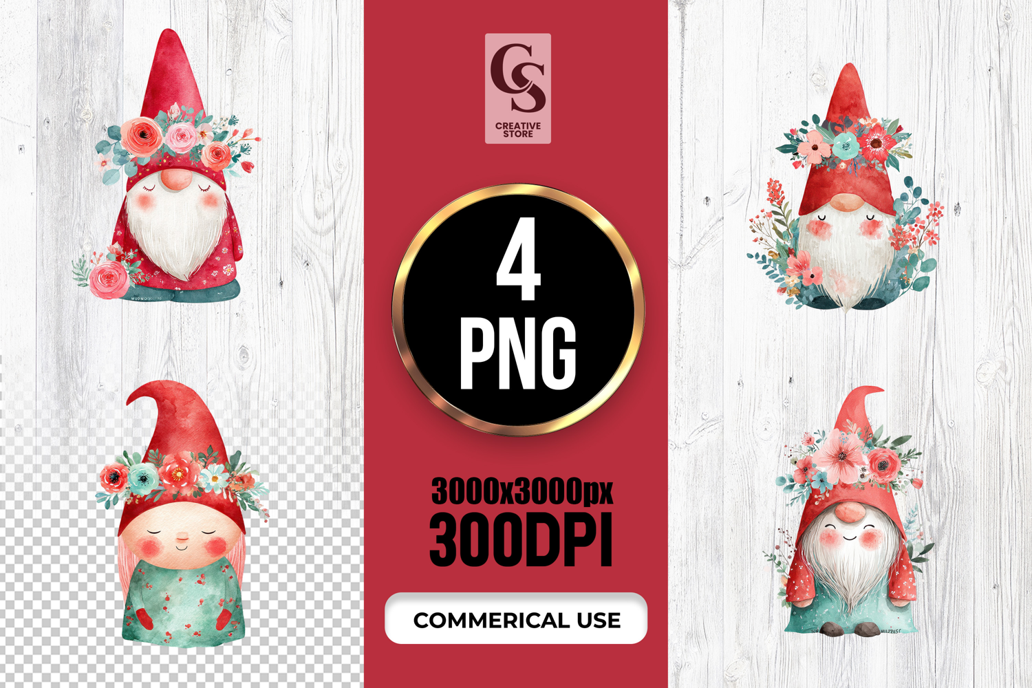 4 Floral Watercolor Gnome with Flower Crown Clipart PNG Files Perfect for Greeting Cards, Invitations, Junk Journal, Party Decor, Scrapbooking and many other craft projects.