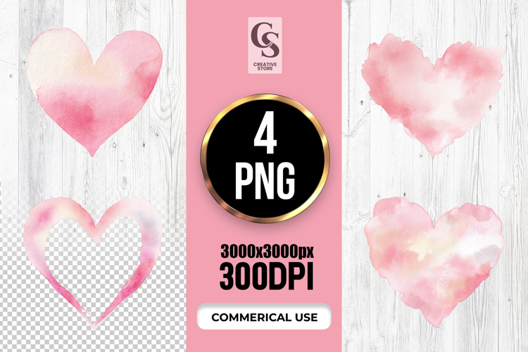 4 Watercolor Pink Heart Shape Clipart Sublimation PNG Files Perfect for Greeting Cards, Invitations, Junk Journal, Party Decor, Scrapbooking and many other craft projects.