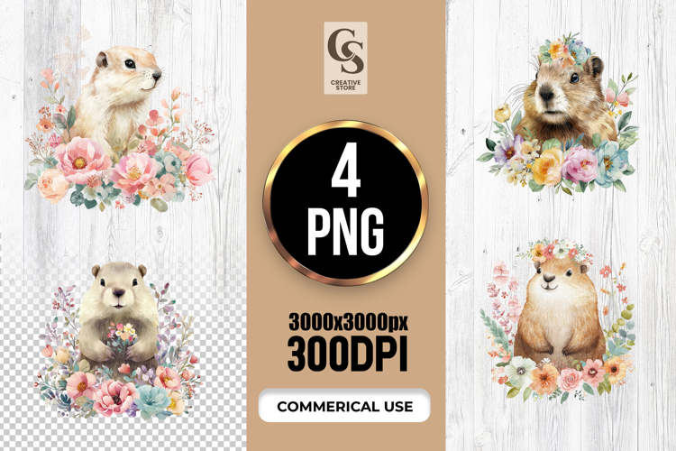 4 Watercolor Otter Floral Clipart Sublimation PNG Files Perfect for Greeting Cards, Invitations, Junk Journal, Party Decor, Scrapbooking and many other craft projects.