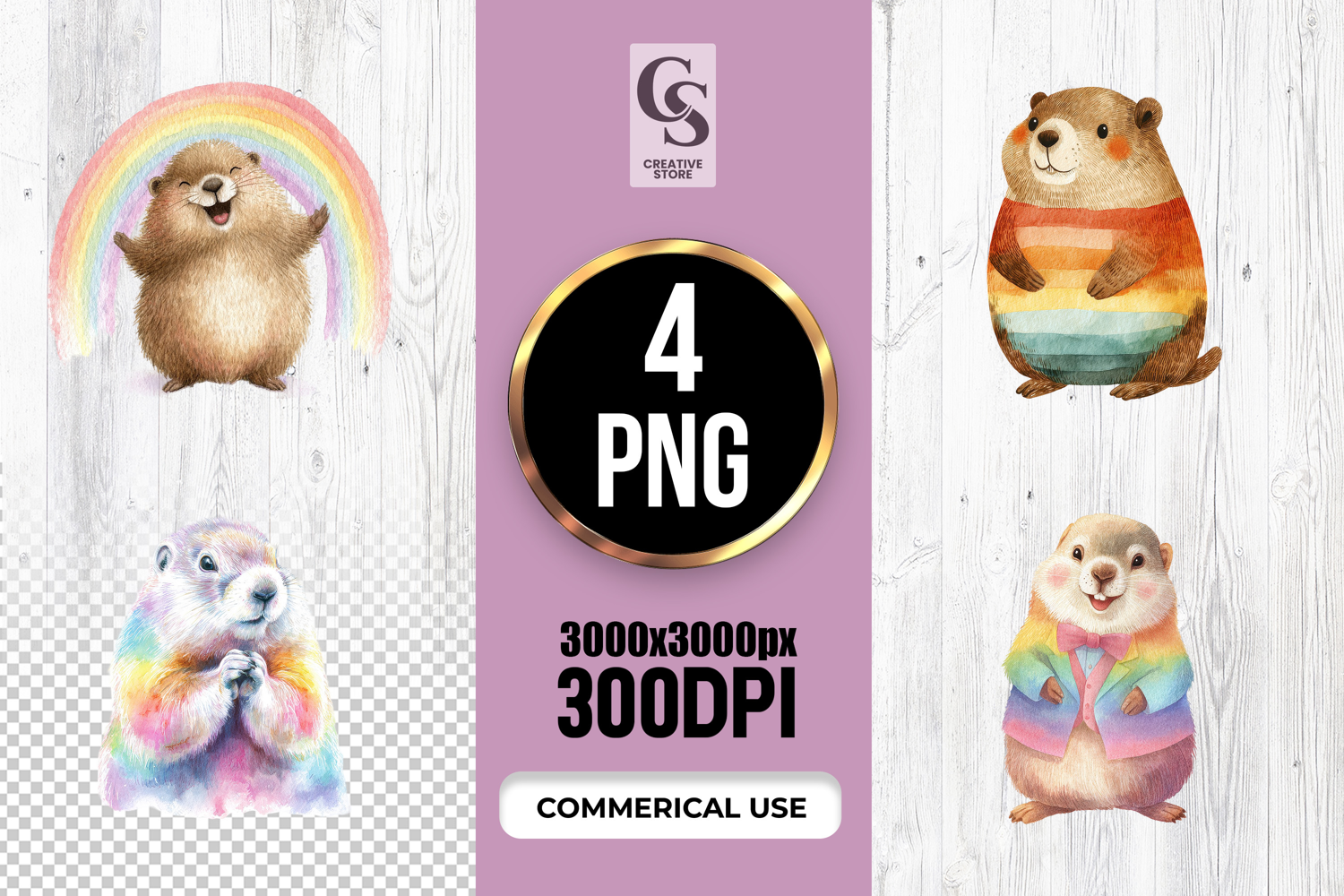 4 Cute Rainbow Prairie Dog Clipart Sublimation PNG Files Perfect for Greeting Cards, Invitations, Junk Journal, Party Decor, Scrapbooking and many other craft projects.