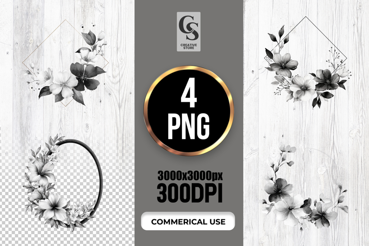 4 Black White Floral Geometric Frame Clipart Sublimation PNG Files Perfect for Greeting Cards, Invitations, Junk Journal, Party Decor, Scrapbooking and many other craft projects.