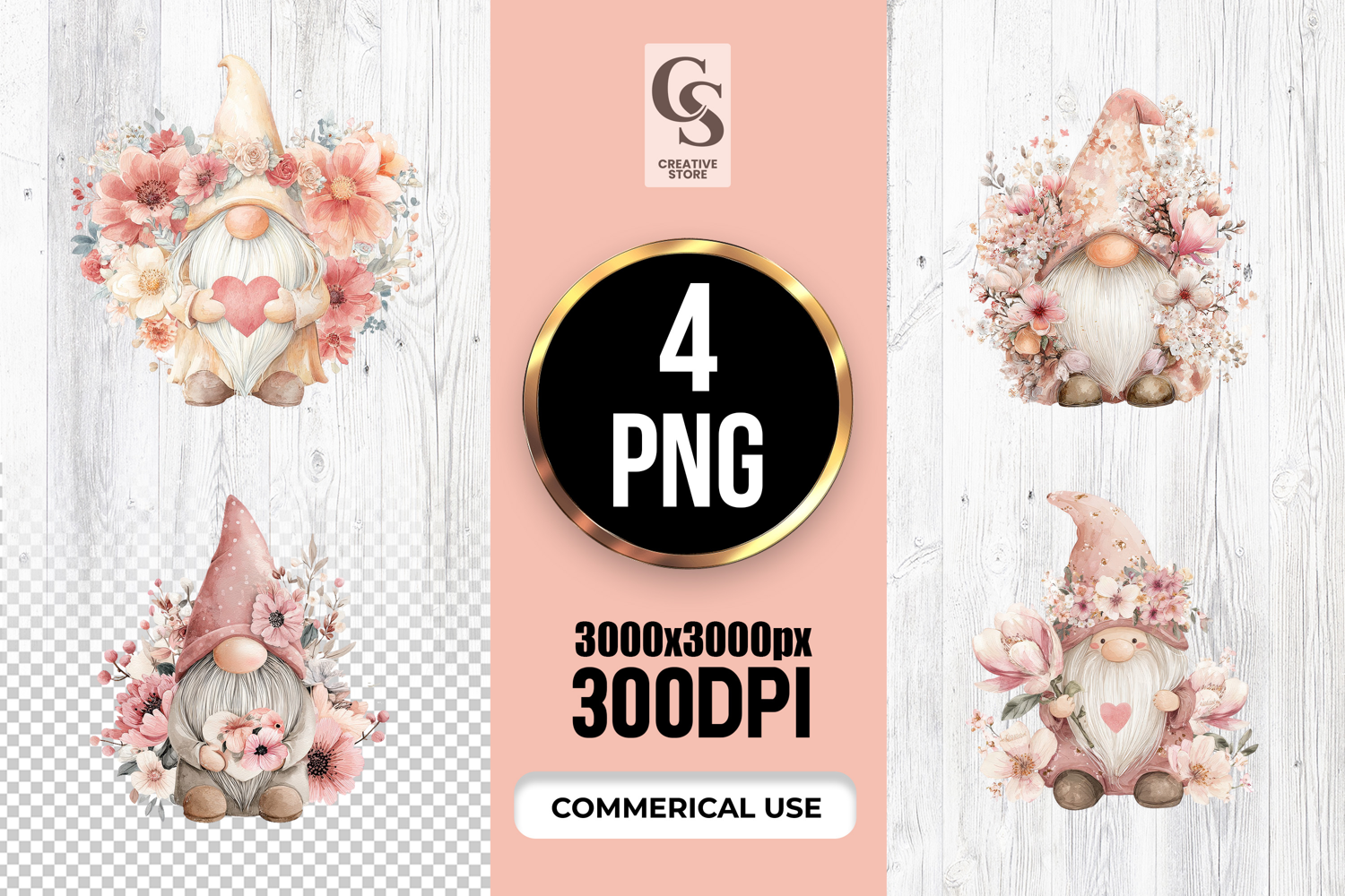 4 Cute Floral Gnome Clipart Sublimation PNG Files Perfect for Greeting Cards, Invitations, Junk Journal, Party Decor, Scrapbooking and many other craft projects.
