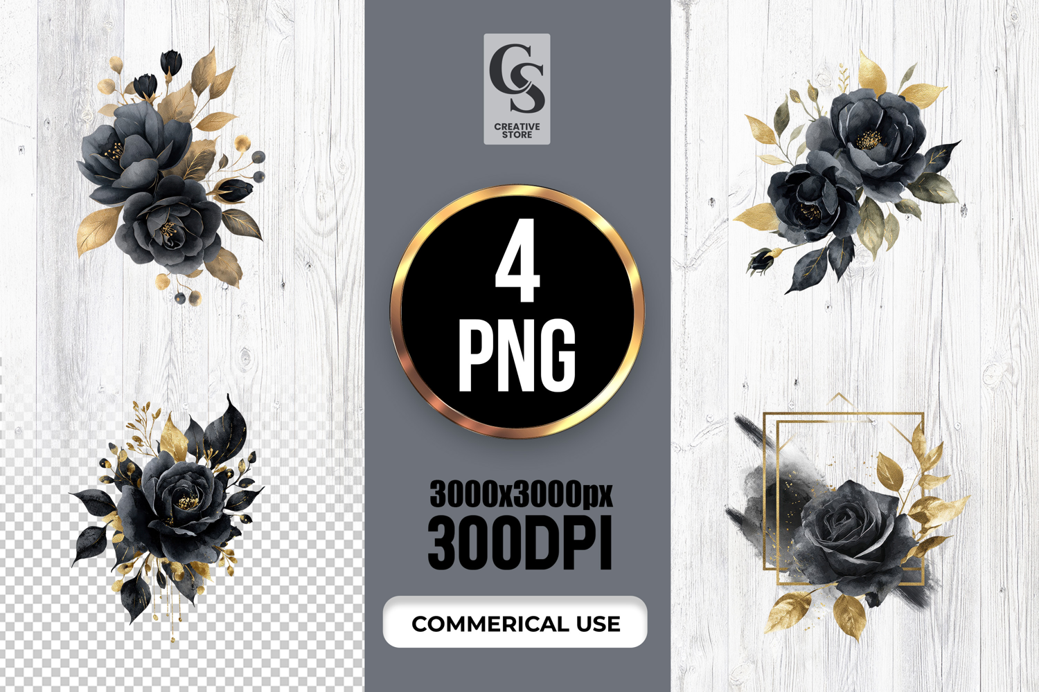 Watercolor Rose Clipart Gold Leaves Clipart Black Rose Clipart Elegant Flowers Png Black Rose Png Botanical Sublimation Png Dark Floral Png Black Rose Sublimation Luxury Floral Clipart Moody Rose Clipart